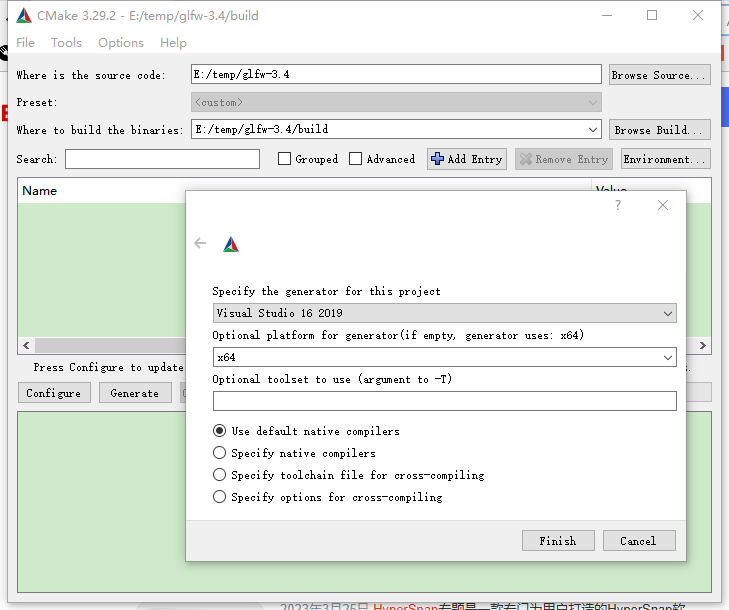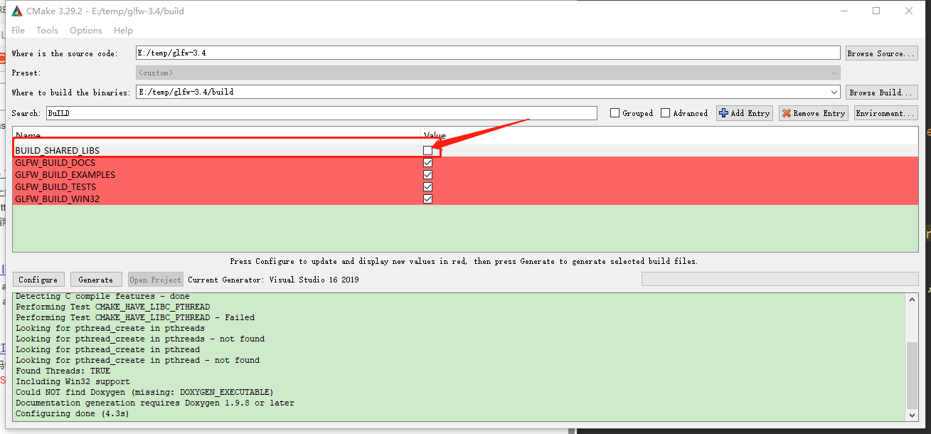下载基础环境下载 cmake工具下载GLFW源代码编译GLFW设置编译路径该选项是生成DLL动态库如果不勾选则只会生成lib库点击Generater点击Open Project 最后修改:2024 年 06 月 25 日 © 允许规范转载 赞 如果觉得我的文章对你有用,请随意赞赏